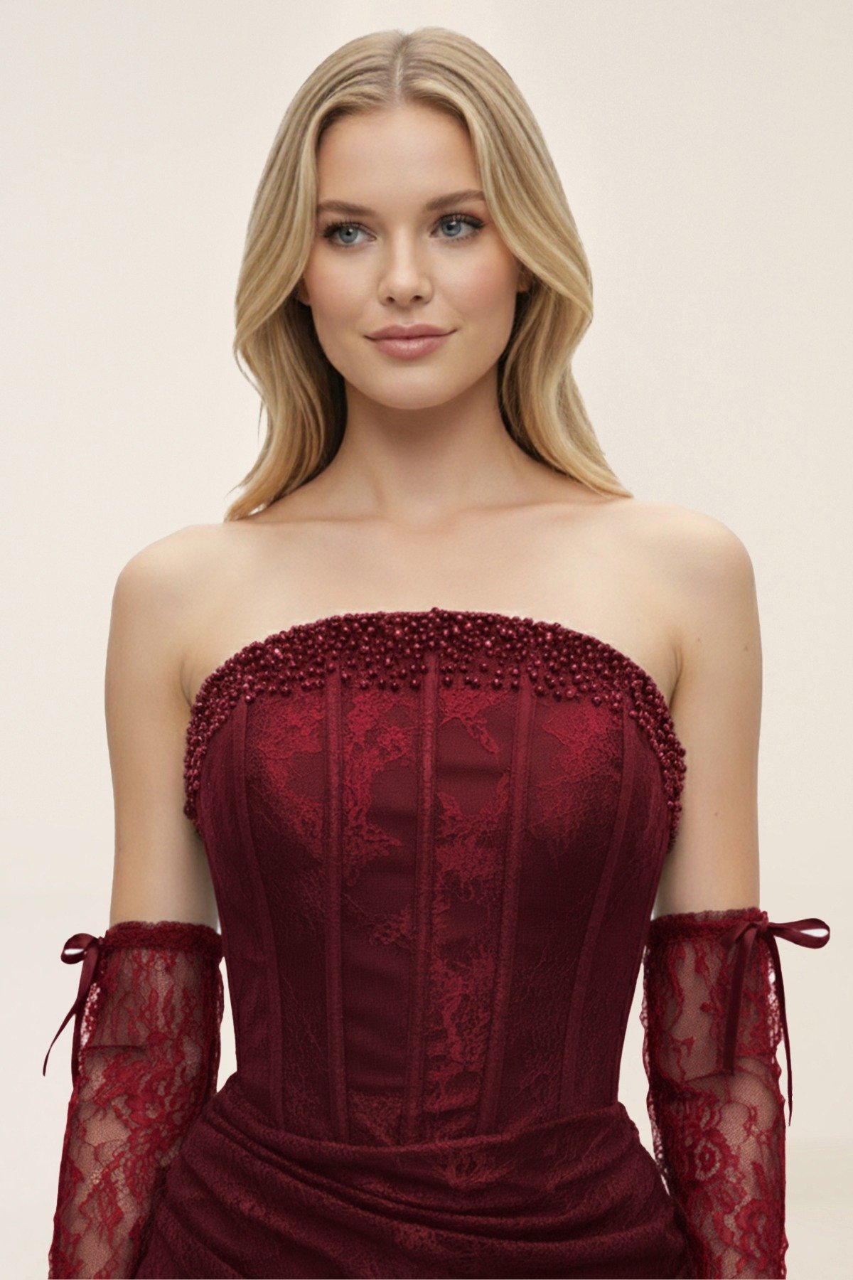 فستان خمري أنيق بقصّة كورسيه بدون أكمام