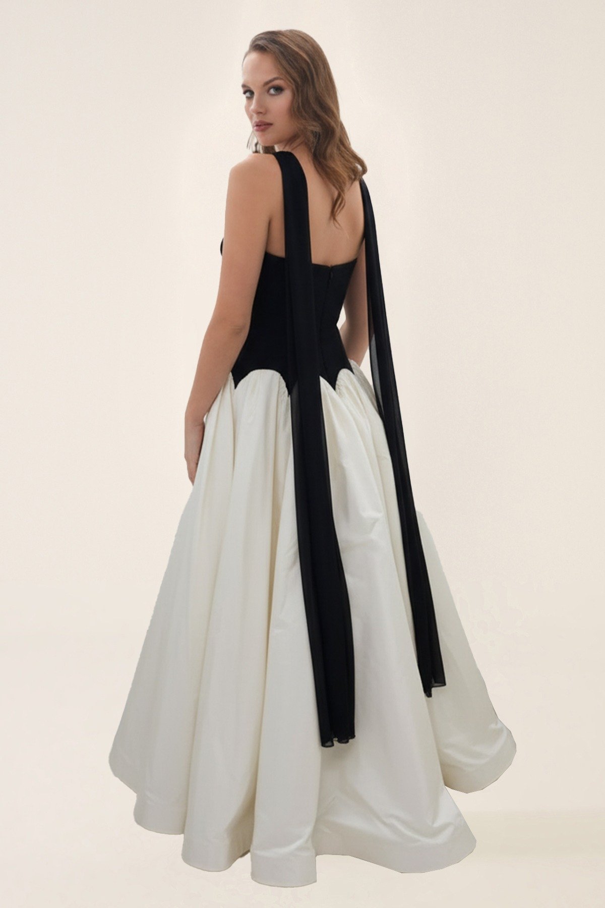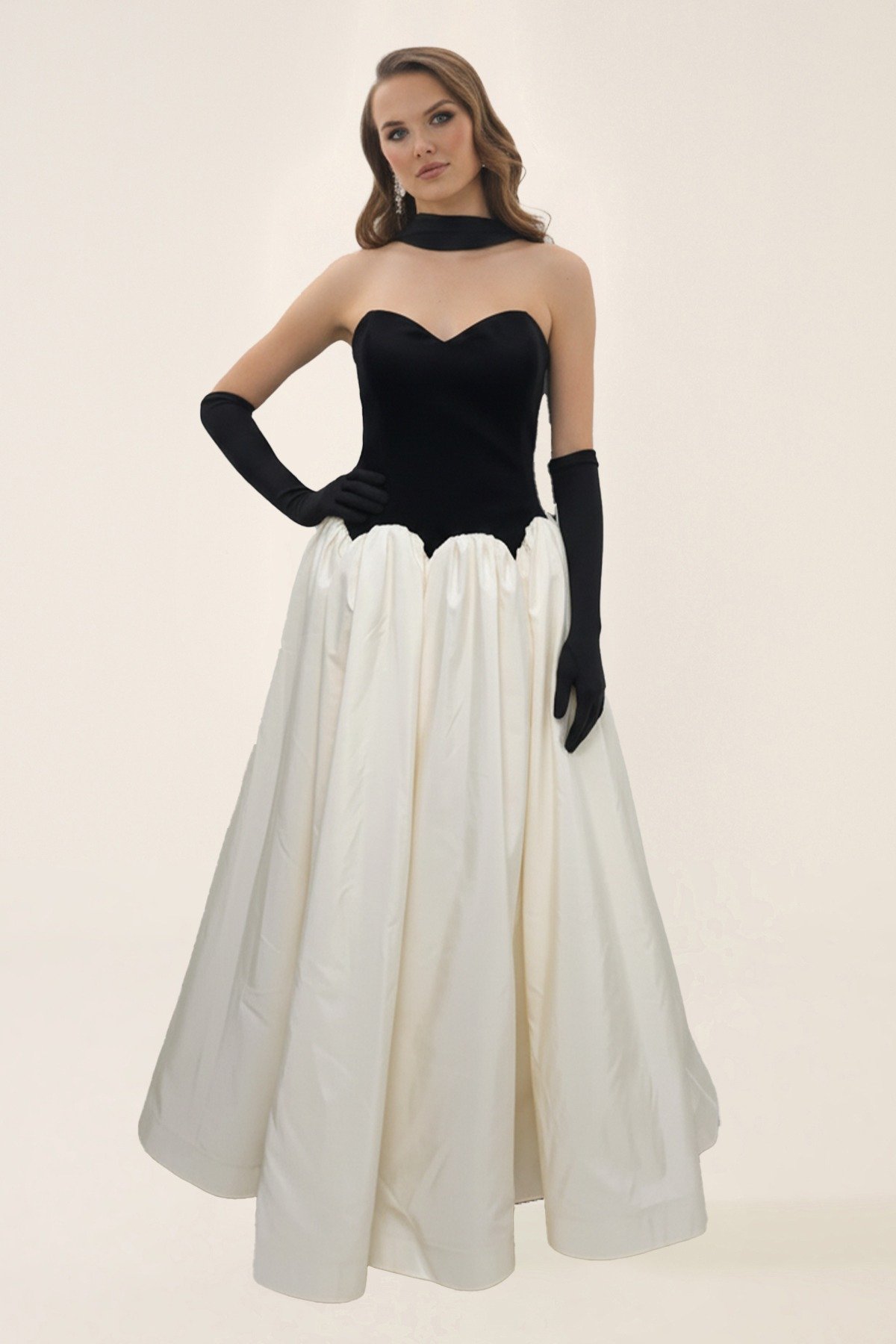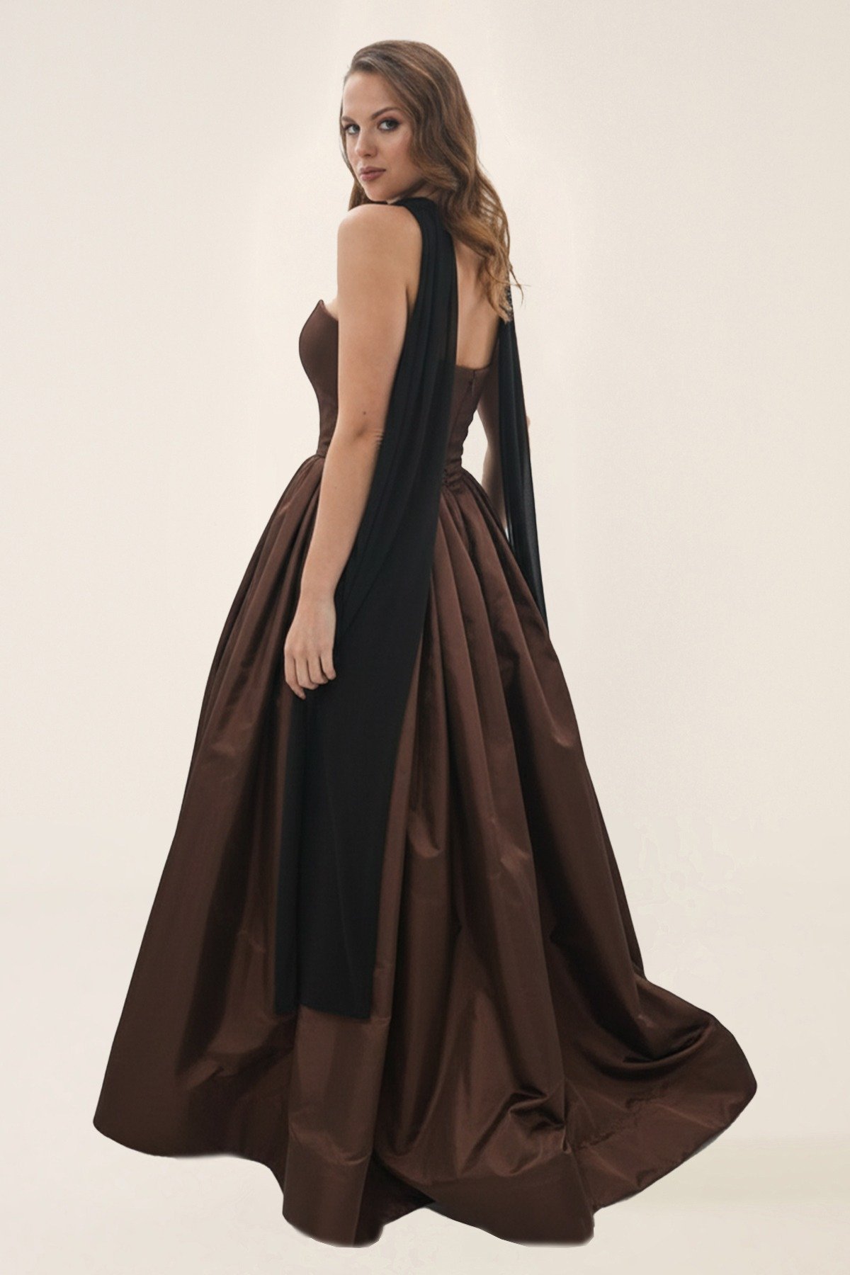 فستان سهرة كلاسيكي – بني أو أسود وأوف وايت | Serpil فساتين