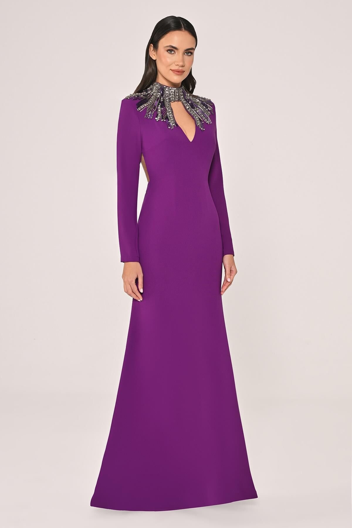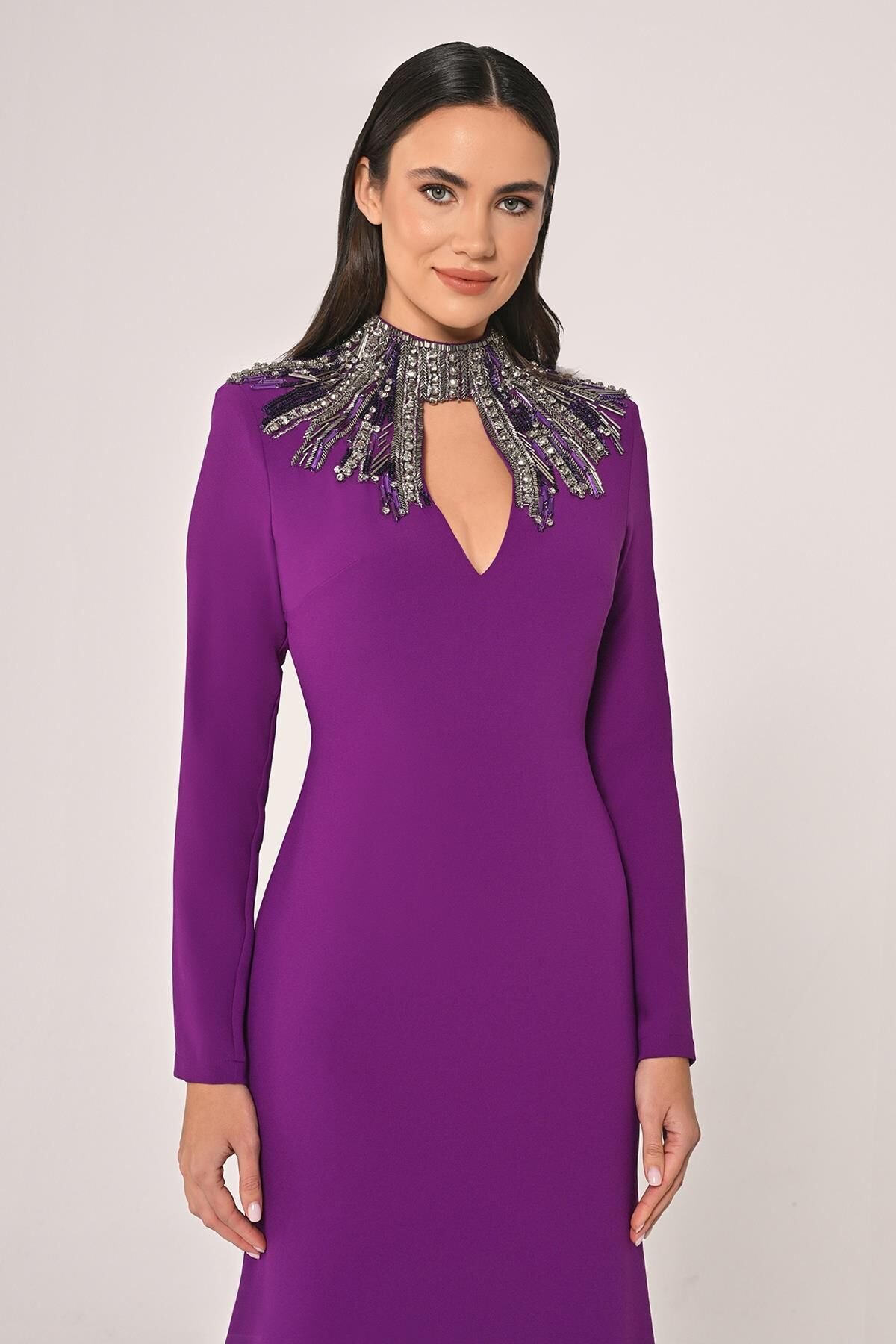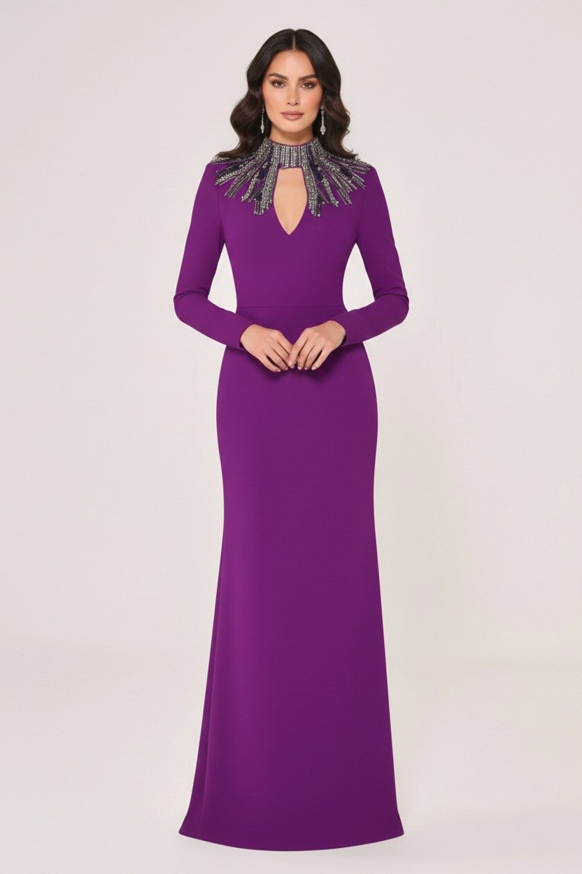 فستان كريب بأكمام طويله